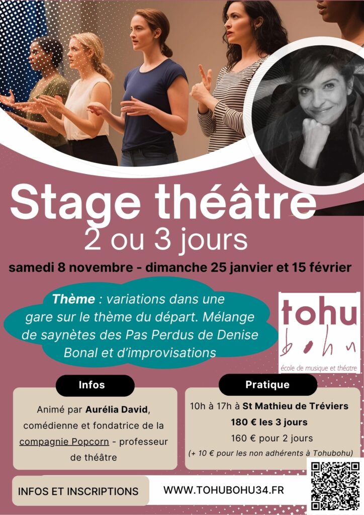 AVIS AUX AMATEURS DE STAGE DE THEATRE : si vous ne pouvez pas y participer mais que vous appréciez ce type de stage, dites-le nous. Nous pouvons prévoir également des stages sur mesure en fonction des envies/possibilités d’un petit collectif.
